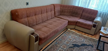 Künc divan yığcam yaşayış otaqları və ya studiya mənzilləri üçün mükəmməl seçimdir, çünki o, sahədən səmərəli istifadə etməklə oturacaq yerini maksimallaşdırır. Tünd çəhrayı rəngli parçadan hazırlanmış oturacaqlar və arxalıqlar rahatlıq təmin edir. Divanın künc hissəsi isə otağın dizaynına uyğunlaşaraq estetik görünüş verir. Oturacaq və arxalıq yastıqları bəzəkli düymələrlə tamamlanaraq divana zərif bir görünüş qazandırır. Divanın qoltuqaltıları bej rəngli dəri ilə örtülmüşdür. Geniş əşya saxlama yeri sayəsində əşyaları səliqəli şəkildə yerləşdirmək mümkündür. Divanın qoltuqaltı hissəsində qəhvəyi rəngli taxta elementlər divana xüsusi bir görünüş verir. Bu divan evdə rahatlıq və funksionallığı təmin etmək üçün ideal seçimdir. Bu divan bir qonaq otağına, ofisə və ya istirahət sahəsinə əla bir əlavə olardı.Bu divan rahatlıq və funksionallığı birləşdirən bir mebel parçasıdır.
