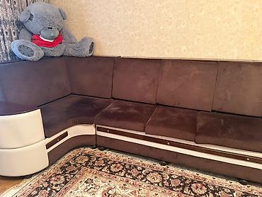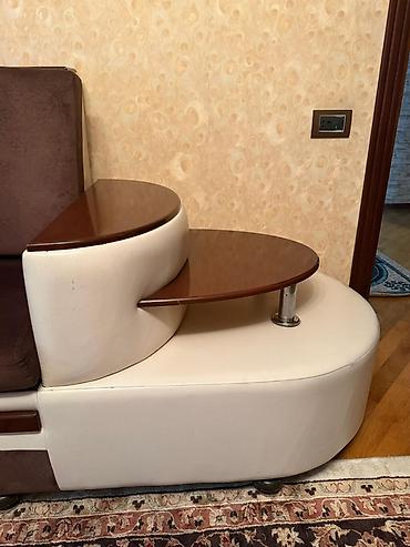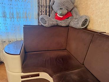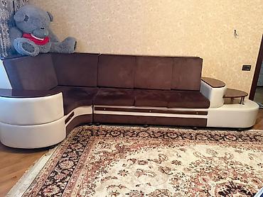 - Dizayn: L formalı künc quruluş, müasir xətlər. Korpus krem rəngli, oturacaq və söykənəcək hissələr qəhvəyi parça ilə işlənib.