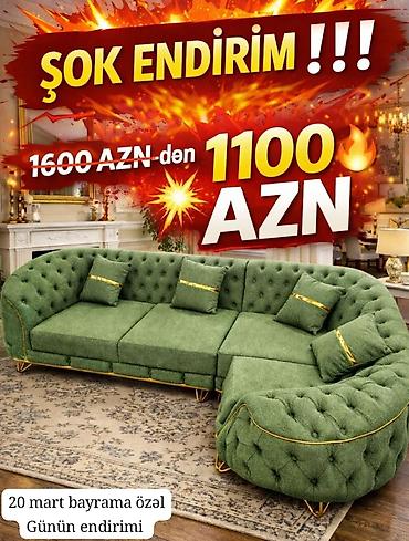 Qonaq otağı və studiya məkanları üçün ideal, rahat oturuşlu və geniş künc divan dəstləri. Şəkillərdə göstərilən məbləğlər və ölçü keçərlidir.
