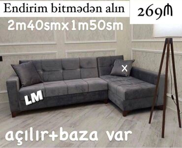 Künc divanlar 269₼ ✔️ Keyfiyyətə zəmanətlə 📌 Yeni və sifarişlə Ölçü: 2m40smx1m50sm Rəng seçimi sərbəst. Kitab kimi açılan və bazalı 2 ədəd yastıqça+15₼ Çatdırılma ödənişli
