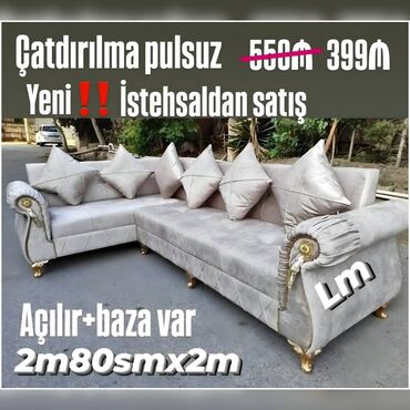 ✔️ Künc divanlar Fərqli görünüş ✔️ TƏK QİYMƏT 😎 Yeni və sifarişlə Qiymət: 399₼ ✔️Ölçü: 2m80smx2m Rəng seçimi sərbəst. Açılır‼️Baza var‼️ Şəhər daxili çatdırılma pulsuz Elani Screen Edib Watcapa...