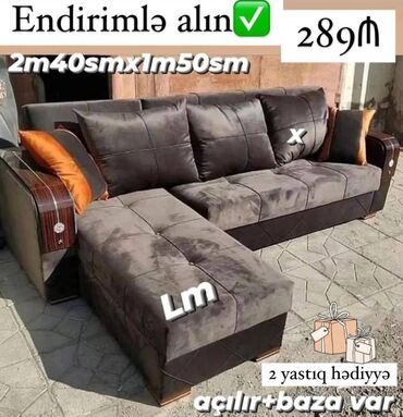 Künc divanlar Yeni və sifarişlə Endirimdə 289 azn Ölçü: 2m40smx1m50sm Rəng seçimi sərbəst. Kitab kimi açılan və bazalı Çatdırılma ödənişli