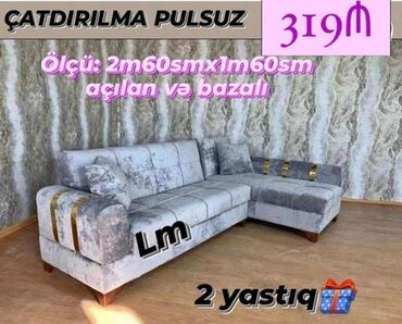 Künc divanlar⚜️ Yeni və sifarişlə Qiymət : 319₼ Ölçü: 2m60smx1m60sm Rəng seçimi sərbəst. Kitab kimi açılan və bazalı 2 ədəd yastıqça hədiyyə🎁 Şəhər daxili çatdırılma pulsuz Elani Screen Ed...