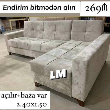 Künc divanlar 269₼ Yeni və sifarişlə ☑️ Ölçü: 2m40smx1m50sm Rəng seçimi sərbəst. Kitab kimi açılan və bazalı 2 ədəd yastıqça+15₼ Çatdırılma xidməti ödənişli Elani Screen Edib Watcapa Gond...