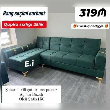 Künc divan ✨ 🆕 Yeni sifarişlə hazırlanır 🎨 Rəng seçimi mövcuddur Açılan + baza 📏 Ölçü: 2×280 🎁 Paduska, pufik hədiyyə 💰 Qiymət: 490 azn 🚚 Çatdırılma və quraşdırılma – Bakı şəhər içi ödənişsiz