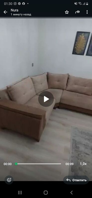 Künc divanı – yumşaq bej rəngdə, L formalı.
