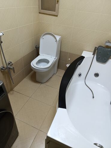 Məkan: işıqlı, keramika plitəli sanitar qovşaq üçün düşünülmüş komplekt. Rahat istirahət və gündəlik istifadə üçün funksional vanna həlli.