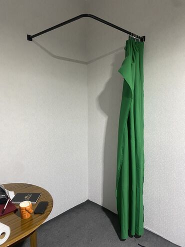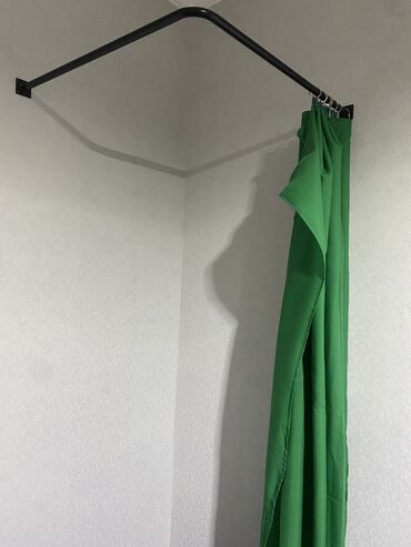 - Yaşıl rəngli pərdə parçasi daxilidir; məxfiliyi təmin etmək, otağı bölmək və ya duş/soyunar yer kimi istifadə üçün münasibdir.