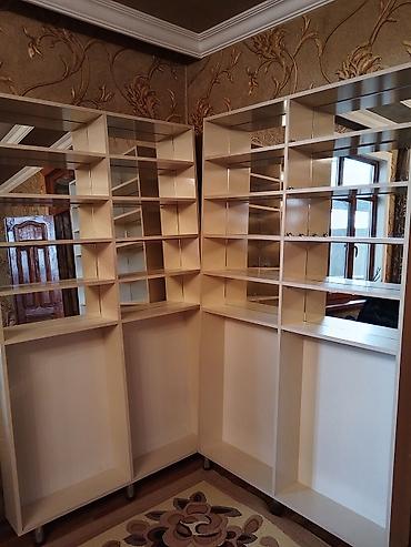 - Material: laminat/MDF əsaslı ağ rəngli korpus, güzgü arxa panellər