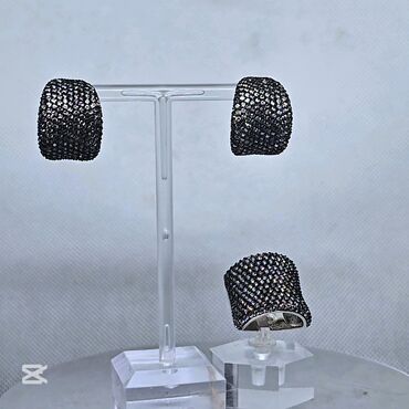 Zərgərlik dəsti: üzük və sırğalar - Üslub: oriental/vintaj motivli, zəngin naxışlı. - Material təsviri: gümüş rəngli metal korpus, xırda markazit tipli parıltılı daşlarla bəzək. - Mərkəzi element:...