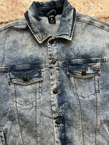 M razmer cins gödəkçə. Detallar: - Ön hissədə düyməli bağlanma - Çoxsaylı ciblər: iki böyük yan cib, qapaqlı sinə cibləri - Üzərində dekorativ yamaq və nişanlar - Klassik mavi yuyulmuş denim parça...