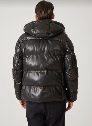 Kişilər üçün yeni qurtka – ölçü: XXL - Model: qara rəngdə klassik qış/qışa yaxın üslub - Material: üst hissə dəri effektli (su və küləyə davamlı görünüş), iç hissə qalın süni kürk astarlı - Yaxalı...