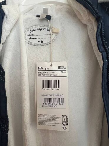 YeniKurtka fransız brendidir Orchestra. Dəniz Mall-dan alınıb. Yenidir, qətiyyən istifadə edilməyib. Öncədən alındlğı üçün ölçüsünü düz seçmədiyimizə görə uşağa dardır. Ölçü 9 ay, 71 santimetr.
