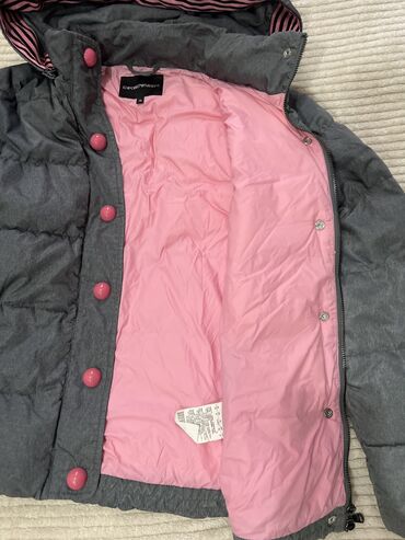 Emporio Armani qadın qış kurtkası - Rəng: tünd boz melanj, daxili astar açıq çəhrayı - Model: kapüşonlu, puffa tipli - Bağlanma: gizli fermuar + ön hissədə iri çəhrayı-süni düymələr - Astar: hamar...