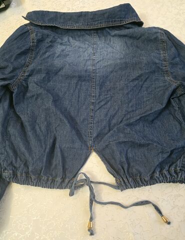 Qadınlar üçün cins gödəkçə - Rəng: açıq yuyulmuş mavi - Kəsim: crop, bədənə oturan siluet; - İçlik: yuxarı daxili hissədə loqolu/parçalı astar - Stil: casual
