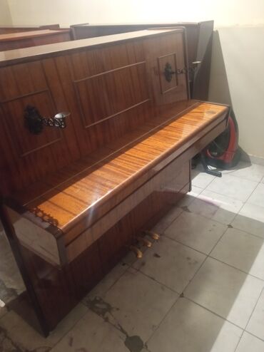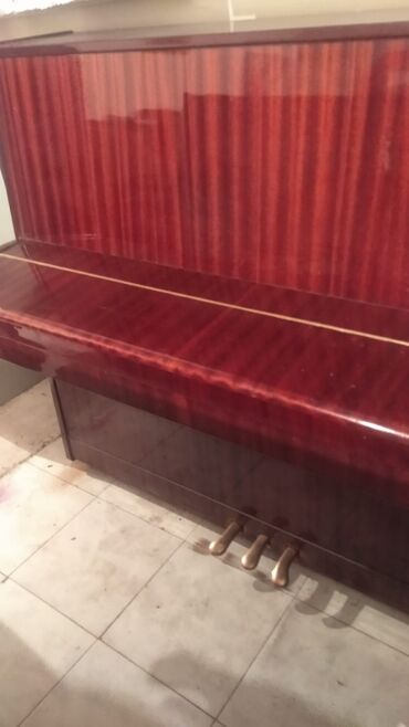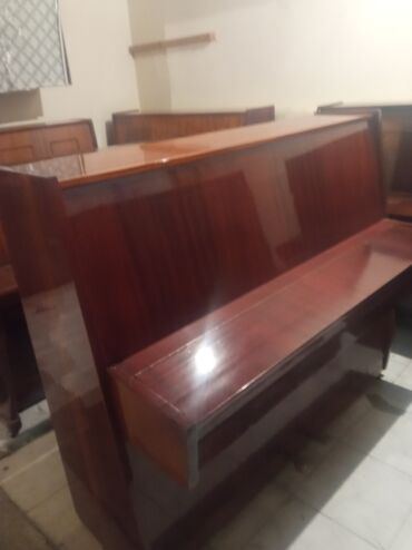 - Korpus: parlaq laklı təbii ağac (qırmızı-qəhvəyi tonlarda), dekorativ panellər