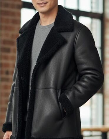 Kişi üçün qara rəngli dəri/semiz üst geyim (dublonka) – klassik dizayn. - Material: xaricində semiə bənzər yumşaq dəri səth, içi tam xəz (isti və yumşaq). - Rəng: qara (tünd qrafit tonlarında). - ...