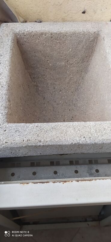 Qədimi qaya daşı - Material: tökmə beton (daş effektli), möhkəm və ağır konstruksiya - Forma: dördkünc üstdən açıq, alt hissəsi konusvari daralan - Rəng/tekstura: təbii boz beton, kobud daş faktu...
