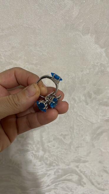 - Yalnız məhsul təsviri verilir. Şəkillərdə göstərilən mavi daşlı gümüşü rəngli üzüklər təqdim olunur.