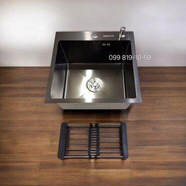 Mətbəx üçün paslanmayan poladdan qəlib tipli (üstdən quraşdırılan) kvadrat lavabo seti