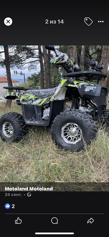 125 CC benzinli ATV – UPGRADE dizayn Xüsusiyyətlər: - Mühərrik: 4-takt, 125 cc - İdarəetmə: sükan üzərində tam mexaniki nəzarət, ön-arka əyləclər - Göstərici paneli: rəqəmsal displey - İşıqlandırm...