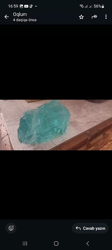 Məhsul: Mavi-yaşılımtıl rəngdə xam büllur/kvars daş parçası