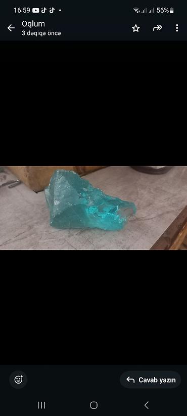 Təbii akvamarin daşı(beril daşı qrupundan) Oval kəsim fasetli. Çox gözəldi. Zərgərlik üçün idealdır əlavə olaraq kolleksiyanerlər üçün də maraqlı ola bilər. Qiyməti razılaşma yolu. Mingəçevir 05527...