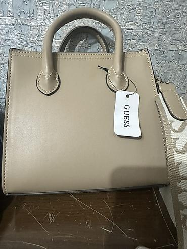 Guess brendli orijinal çanta. - Material: bez və süni dəri kombinasiyası, rellefli qəhvəyi detallarla - Rəng: bej fon üzərində qəhvəyi naxışlı monoqram, qəhvəyi dəri hissələr - Fittings: antik qız...