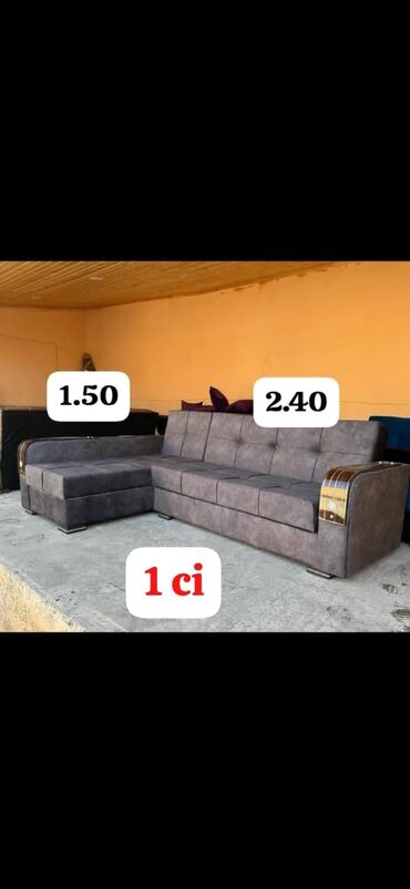 L‑formal “L” künc divan – çevrilən yataq funksiyalı Xüsusiyyətlər: - L‑şəkilli dizayn, sağ və ya sol küncə uyğun quraşdırma - Ölçülər: uzun hissə təqribən 2.40 m, oturacaq‑şezlon hissəsi 1.50 m (ş...