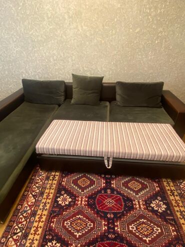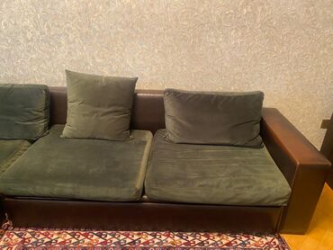 Çevrilən divan/çarpayı - 3 nəfərlik, qatlanan mexanizm: asanlıqla geniş yatacaq səthinə açılır - Rəng və material: mərmər naxışlı qəhvəyi parça/eko–dəri üslubunda üzlük - Rahat bərk oturacaqlar və...