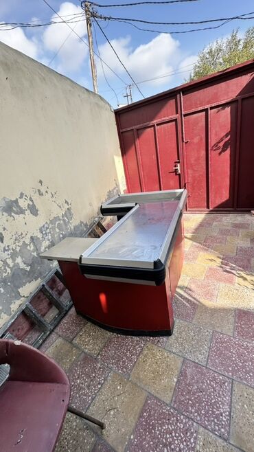 Qirmizi rengde Kassa stolu satilir.Demirdendir. 2eded var. Biri Sagdi O biri Sol terefdir. Yaxsi veziyetdedir. Qiymet 1 ededinin qiymetidir. 2-sinide alana endirirm edecem. Xahis edirem fikri ...