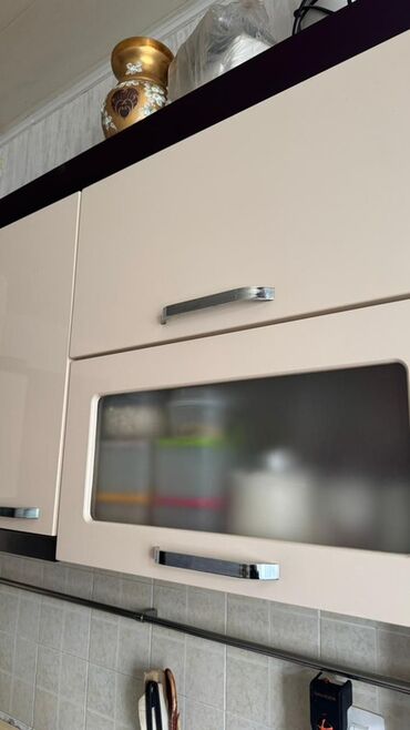 - Üst və alt dolablar: çoxsaylı şkaf və çəkməcələr, yuxarı dolablarda mat-şüşəli vitrin qapılar, xrom rəngli tutacaqlar
