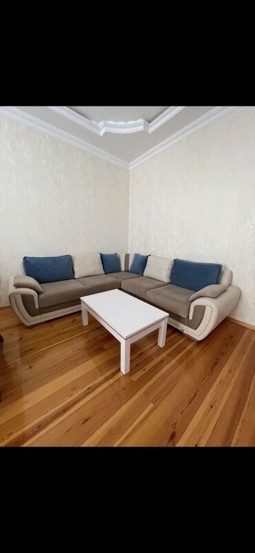 - Komplekt: 1 böyük L formalı divan + ağ rəngli düzbucaqlı orta sehpə (şəkildəki)