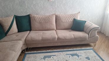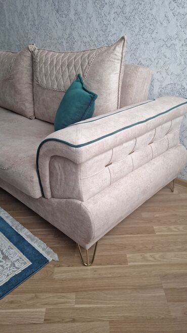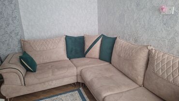 - Komplekt: 1 künc divan + 5 ədəd iri arxa yastıq + 4 ədəd dekorativ yaşıl yastıq