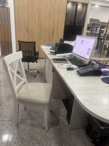 - Dizayn: L‑formalı, geniş iş səthi; qabaritləri təxminən 2 tərəfli uzun stol (bir tərəf uzun, digər tərəf daha qısa) – bir neçə iş stansiyasını yerləşdirməyə uyğundur.