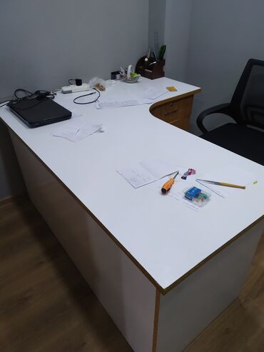 Ofis üçün L‑şəkilli künc masa - Dizayn: L‑formalı, geniş iş səthi; qabaritləri təxminən 2 tərəfli uzun stol (bir tərəf uzun, digər tərəf daha qısa) – bir neçə iş stansiyasını yerləşdirməyə uyğundu...