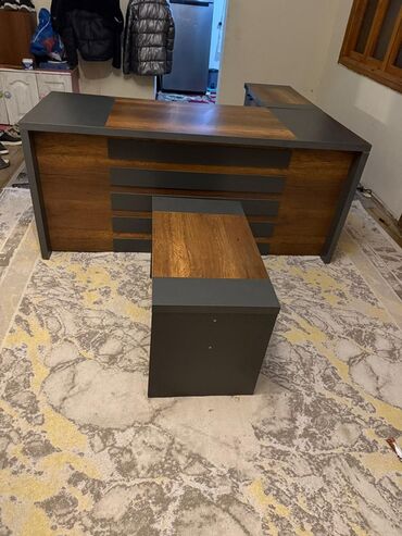 - Yan modulda qapılı şkaf bölmələri; sənədlər, ofis ləvazimatları üçün saxlama imkanı.