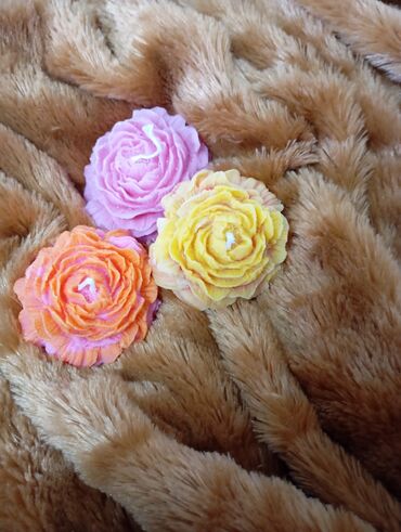 Mumlar şamlar – dekorativ, əl işi rəng çeşidləri: Ağ, sarı, mavi, yaşıl, gülrəngi, qırmızı - Gül formasında mumlar: qızılgül (qırmızı) ( ağ) ( sarı) ( mavi) , ranunkulus/peyğəmbərçiçəyi (ağ), çoba...
