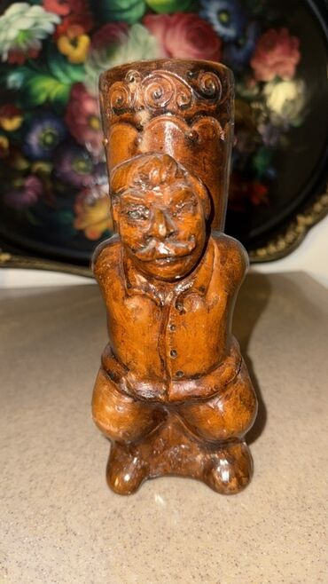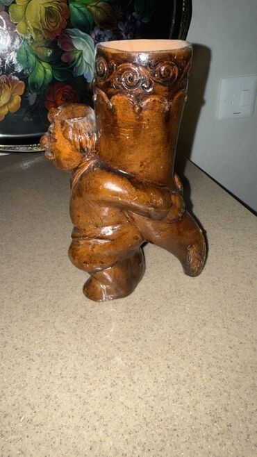 - 1 ədəd dekorativ qab/kiçik vaza – insan fiquru formasında (fiqur arxasında silindrik qabı “daşıyır”), üst hissədə relyefli ornamentlər