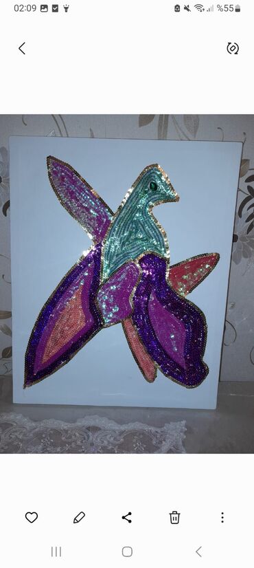 Divara quraşdırılmışMəhsul: Əl işi rəsm tabloları – parıltılı payetlərlə bəzədilmiş.sifaris qəbul edilir