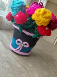 - Rəngarəng toxunmuş güllərdən ibarət dekorativ buket