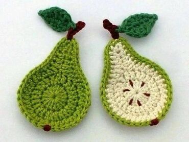 - Armud formalı toxunma dəst – bütöv və kəsilmiş armud motivləri, yarpaq və sapla tamamlanır; altlıq, aplik və ya mətbəx dekoru kimi uyğundur.