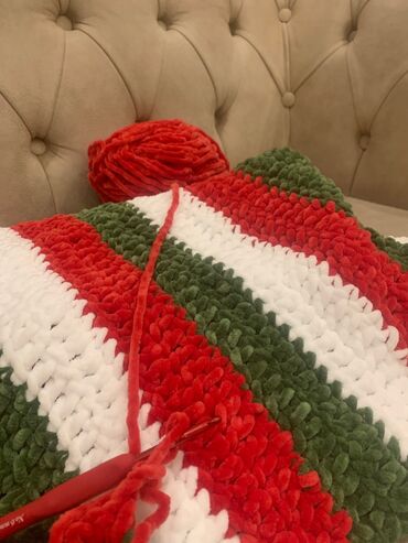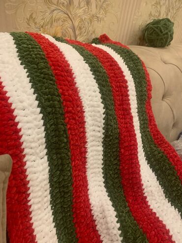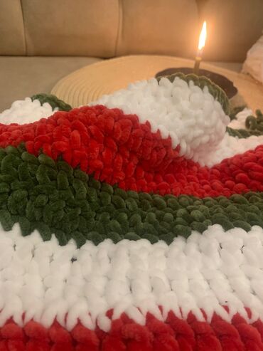 Məhsul: əl işı toxunma bayram temalı pledlər Xüsusiyyətlər: - Yüksək qalınlıqlı, yumşaq “chenille” tipli iplə toxunub – çox isti və rahatdır. - Ölçü təxmini: iri divan/əlçimə üçün uyğun (şəkillərd...