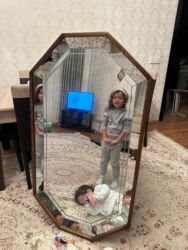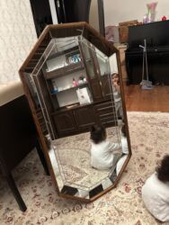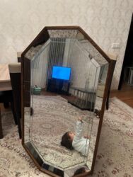 Güzgü. Oyma, əl işi. Material qoz ağacı. 40 ildən çox yaşı var. Ünvan 5 mərtəbə
