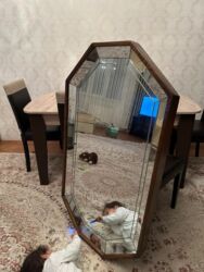 Kamod güzgüsüdür.Çıxardılıb yerə qoyulub.Arxasına asılqan bərkidib divardan asmaq olar.Hər hansı bir kamoda da bərkidmək olar.Cızığı yoxdur.Eni 90 sm,uzunluğu 1 metrdir.