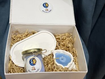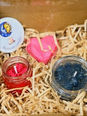 - Hədiyyəlik kompozisiya: şamlar, vanna bombası, fiqurlu sabun/aksesuarlar və masaj-skrab sabunu bir yerdə təqdim olunur