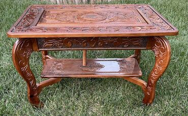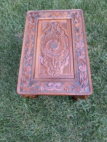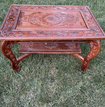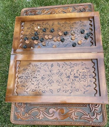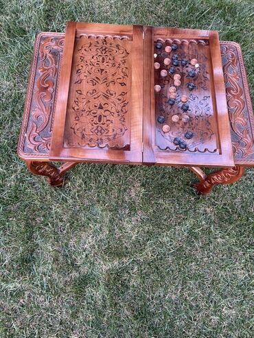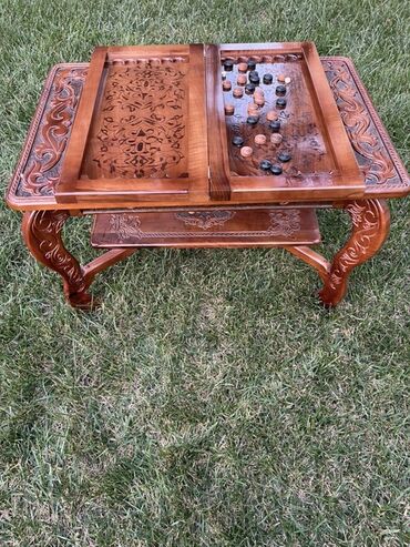 Əl oyma naxışlı taxta kofe/jurnal masası – içində nərd dəsti