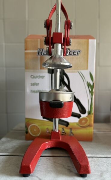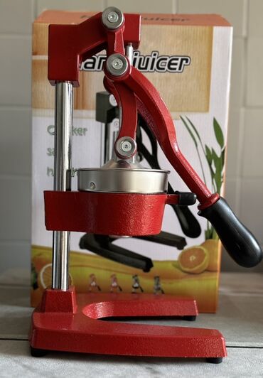 Manual sitrus şirəçəkən (press) - Material: metal gövdə və ayaqlıq, paslanmayan polad şirə qabı və süzgəc hissəsi - Lever mexanizmi: yuxarıdan qolu basmaqla limon, portağal, naringi, qreypfrut kim...