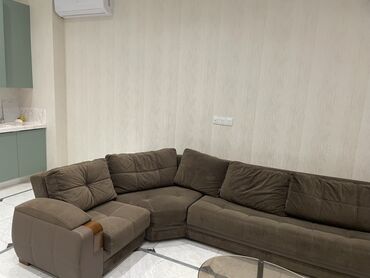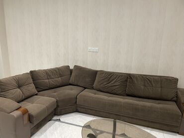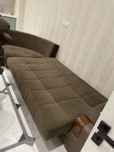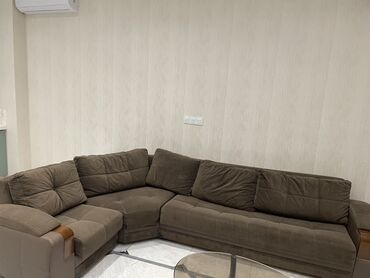 - Tərkib: 1 ədəd üçnəfərlik divan, 2 ədəd kreslo - Parça: tünd bej/kaffe rəngli yumşaq məxməri toxuma - Dizayn: straight tikişlər, qol hissələrində dekorativ qızılı zolaqlar və metal emblem detal...