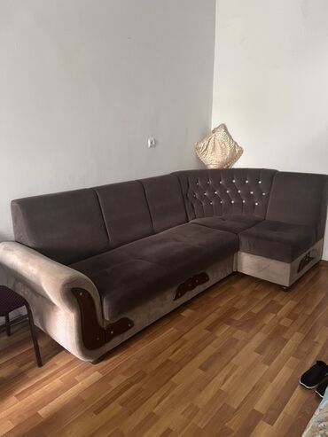 - Forma: L-şəkilli künc konstruksiya, sağ tərəf qısa ottoman hissə ilə